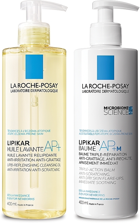 - Sadržaj seta: Hidratantno ulje za čišćenje i obnavljanje lipida za ublažavanje iritacija – La Roche-Posay Lipikar Cleansing Oil AP+, 400 ml + Balzam za obnavljanje lipida za vrlo suhu i atopiji sklonu kožu lica i tijela – La Roche-Posay Baume AP+M, 400 ml