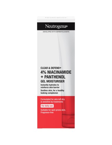 Neutrogena® Clear & Defend+ Hidratantna gel krema s 4% niacinamida + pantenolom.