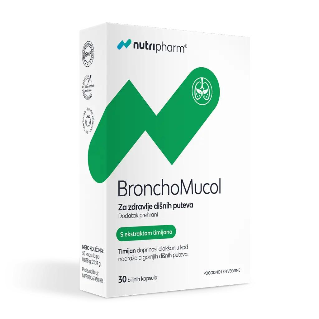 Nutripharm® BronchoMucol kapsule namijenjene su odraslima i djeci starijoj od 6 godina kod olakšanja od nadražaja gornjih dišnih puteva.